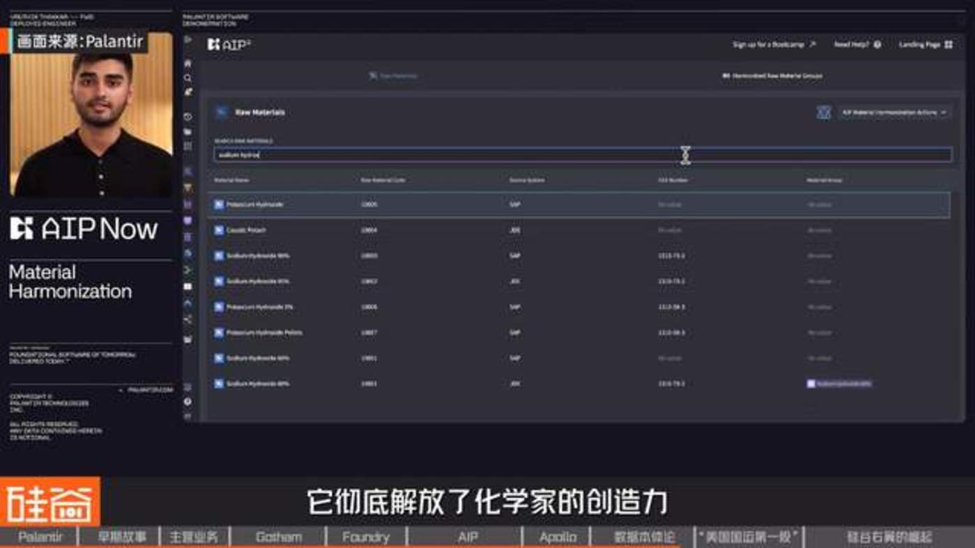 随后这家化学品公司与Palantir合作,在Foundry上开发了多款应用,来加速对公司数据的清洗和分析,它彻底解放了化学家的创造力。这就是一个很好的本体论如何运作的例子,相当于Palantir给这家公司建立了一个实时更新的“数字孪生”,枯燥的数据工作让Palantir的AI来做,而真实世界里的化学家们,就有了更多时间,去研究新配方。
