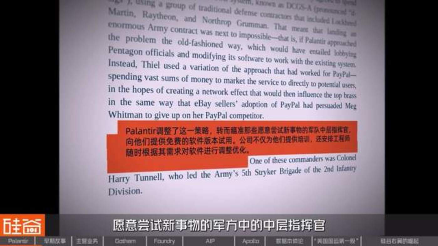 在成立的前几年,Palantir绞尽脑汁想打入美国军方,获得合约。《逆势者》中写到,公司最开始将目标对准愿意尝试新事物的军方中的中层指挥官,提供免费的软件版本供他们使用。
