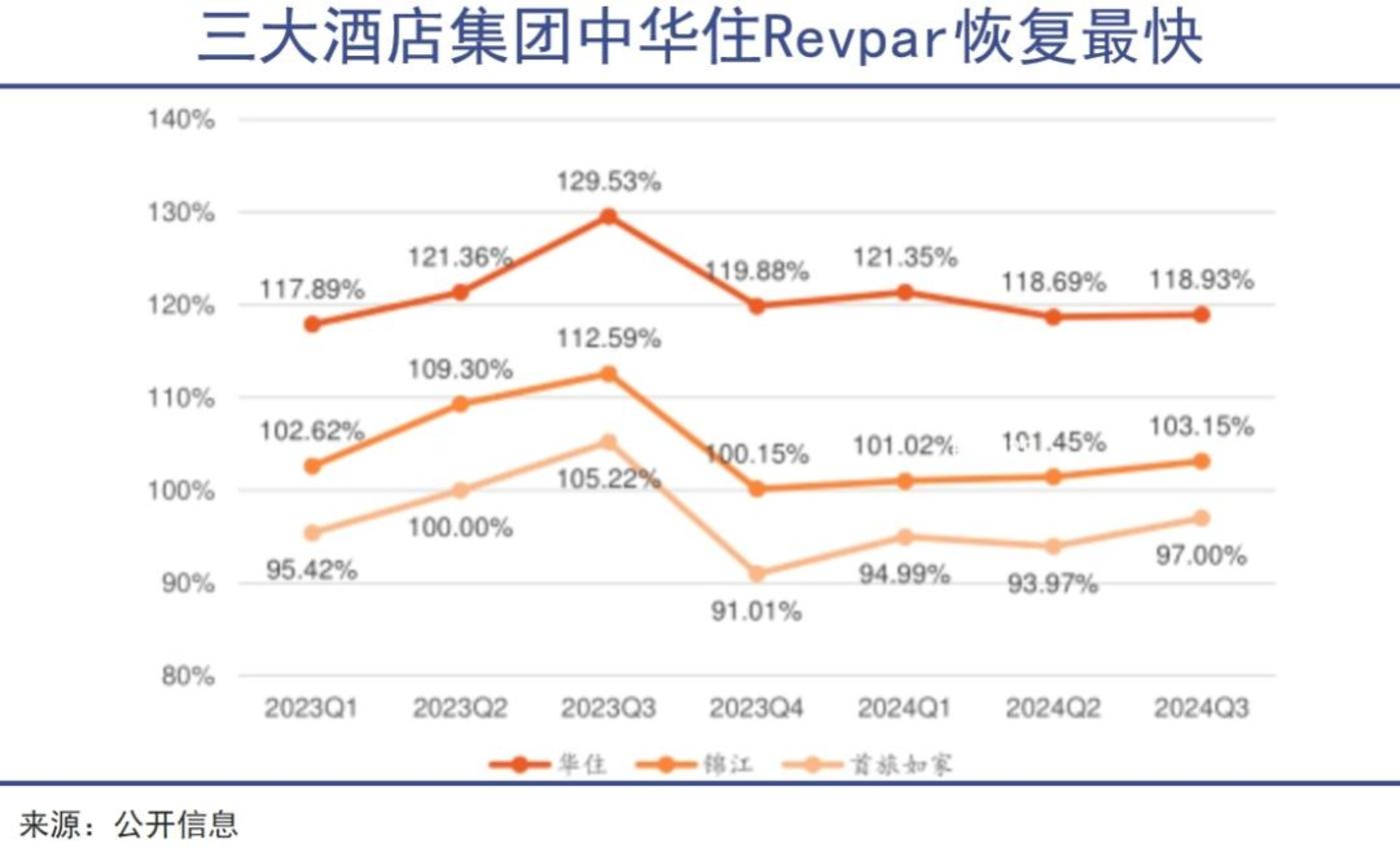 值得注意的是,华住在2024年对门店OTA订单占比设置30%的红线,反映出其去OTA战略执行已进入制度化阶段。从RevPAR(每间可售房收入)来看,华住的战略执行效果并不算差。