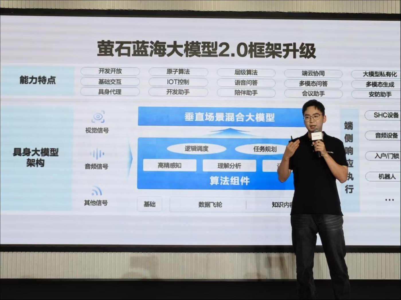 只是,开放的背后,意味着对安全等级有着更高的要求,以及在端云结合的应用下,数据隐私也成为用户最担心的事情。对此,萤石蓝海大模型研发负责人王晟解释称,必须在设备端落地的算法,例如人脸解锁,人脸隐私等最高安全级别的数据不上云。其他的数据通过一些协议后上云。如果是高响应的算法,就在设备端落地,端侧负责触发,云端负责二次精度的判断。