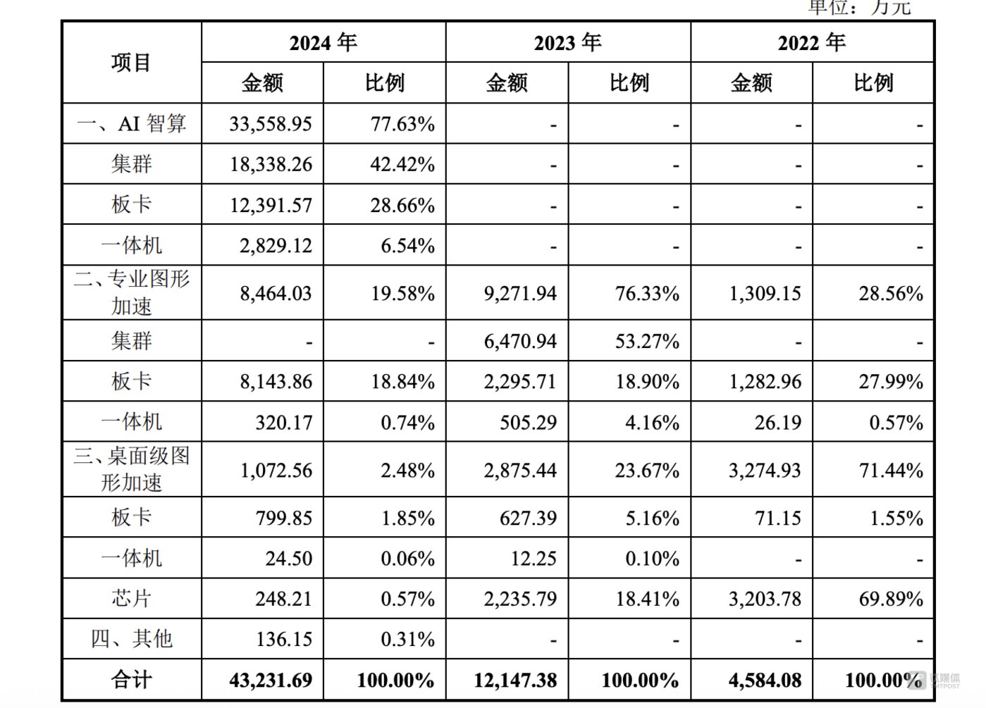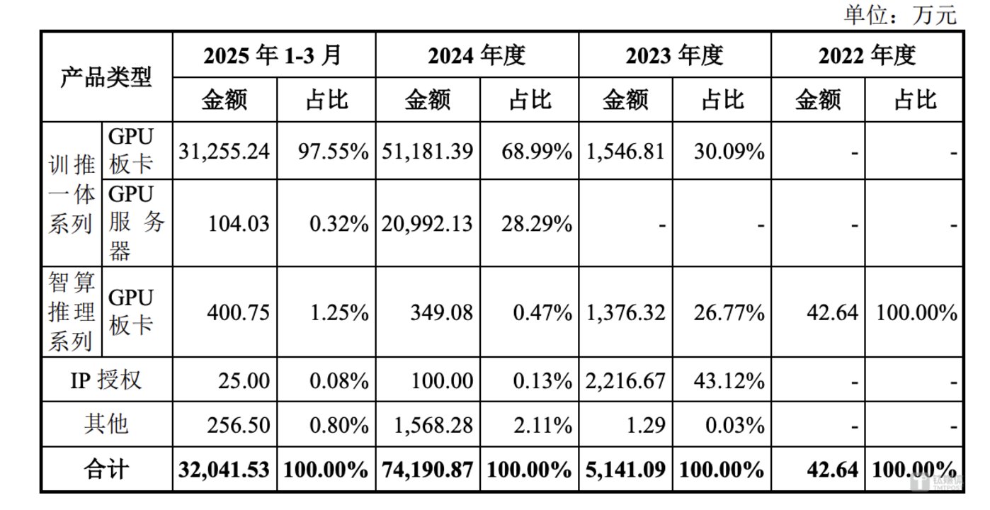 2024年,沐曦股份训推一体系列GPU板卡收入占比超过97%。
