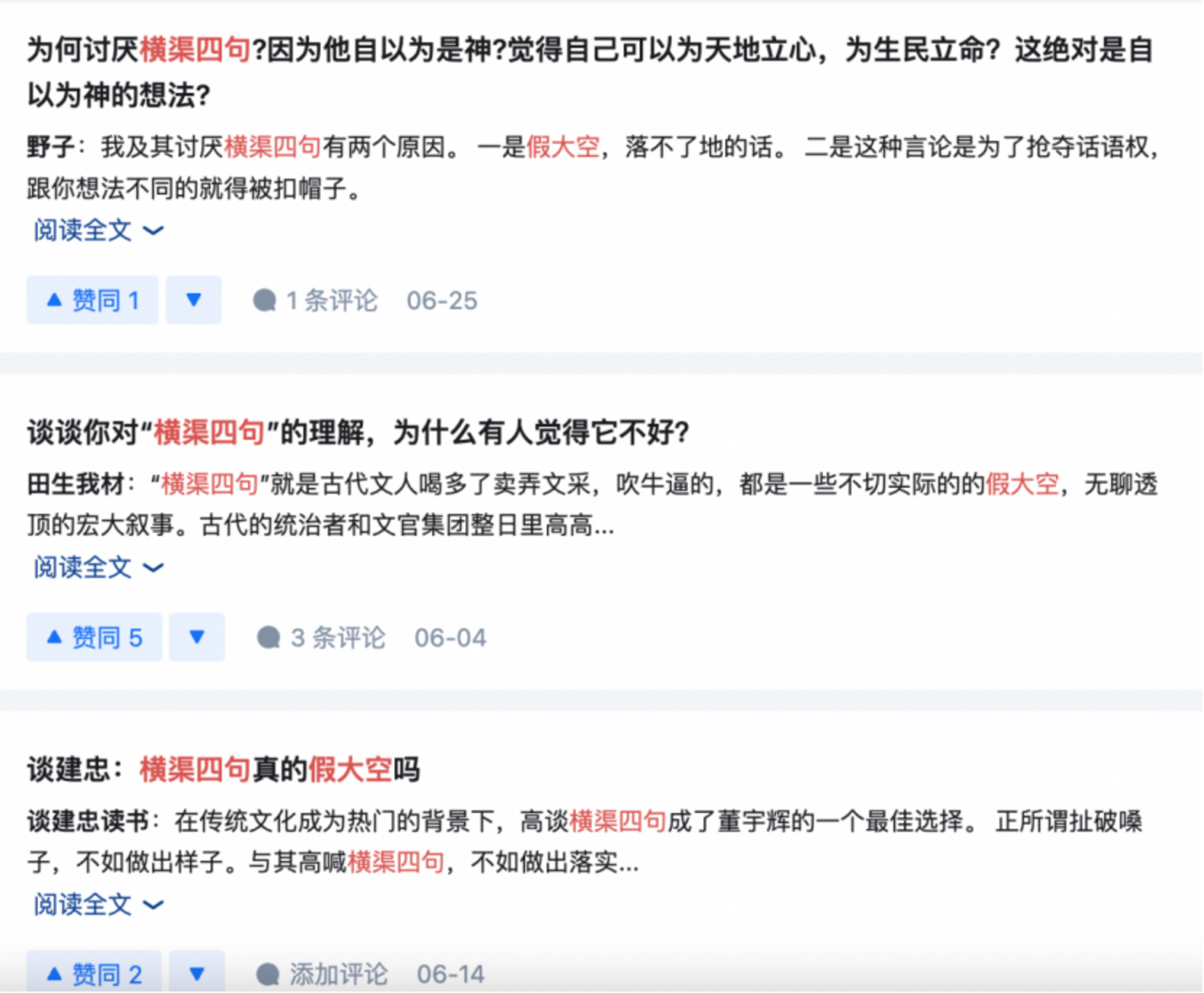 在这场骂战中,随着“横渠四句”的热度持续攀升,舆论焦点逐渐从粉圈之争转向文化领域:从初始围绕“董宇辉配不配说横渠四句”的争议,转向对“横渠四句”思想内涵本身的探讨:有人认为这四句是假大空的口号,暗含“权力幻想”;有人坚持认为这是知识分子的精神追求。