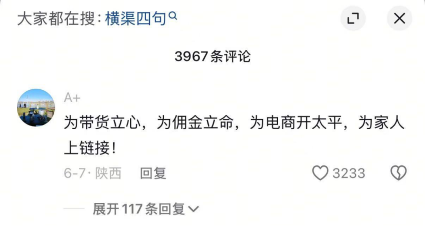 更有人直接改写“四为句”,即“为带货立心,为佣金立命,为电商开太平,为家人上链接”。