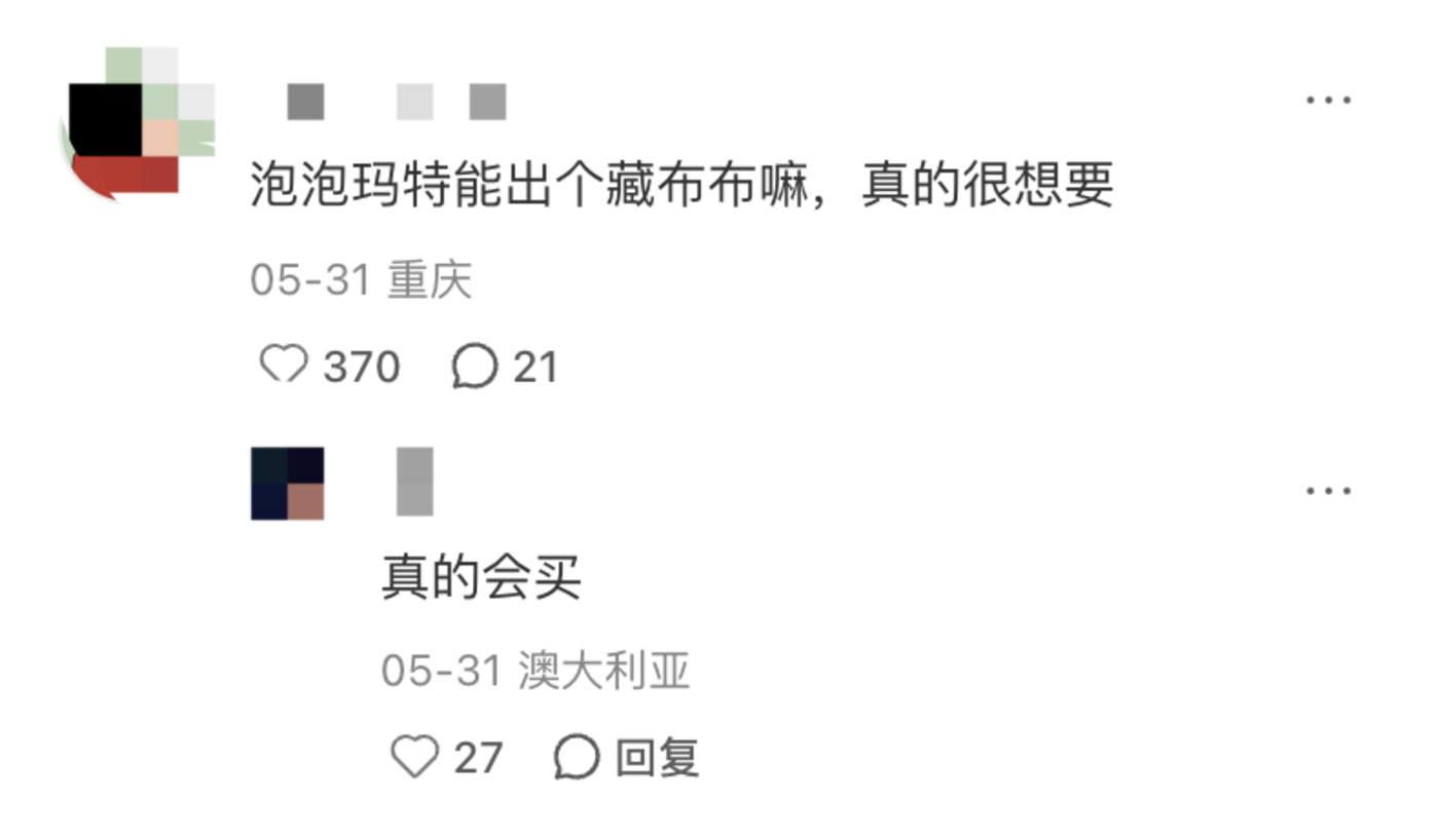 评论区网友高呼:“泡泡玛特能出个藏布布嘛,真的很想要”、“真的会买”、“但也是真的抢不到”。