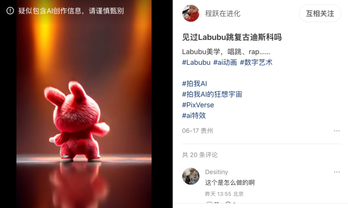 在这波AI LABUBU热潮中,原本静态的LABUBU玩偶“活”起来。