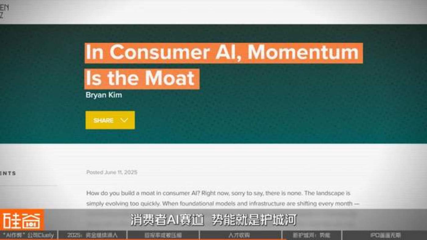 a16z最近在6月11日发表了一篇博文,标题就叫做“In Consumer AI, Momentum Is the Moat”(消费者AI赛道,势能就是护城河)。