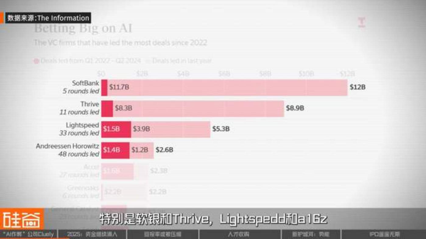 可以看出,头部基金从去年到今年开始大量入局,特别是软银和Thrive。投了开头这家AI作弊公司的基金Lightspeed和a16z,也在布局相当规模的投资。