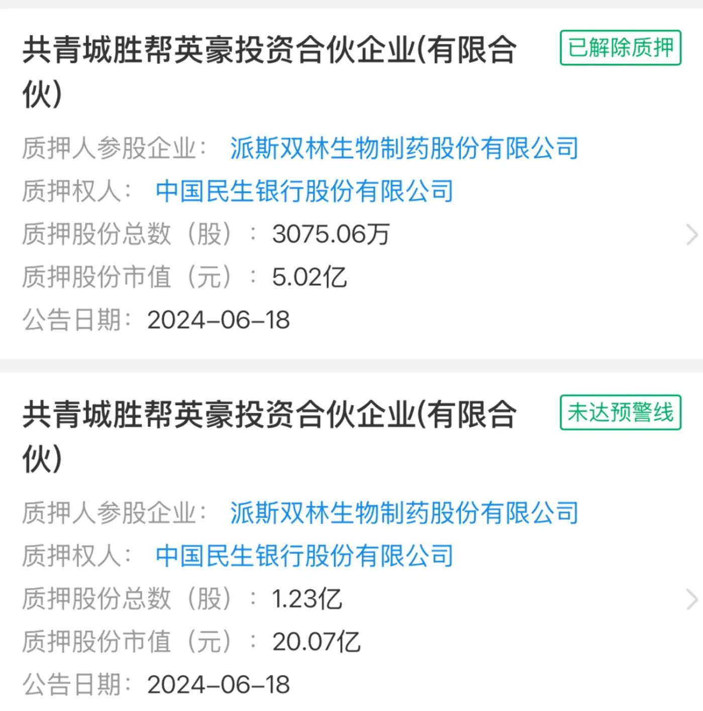“胜帮系”在资本运作上的激进2023年达到高潮,当年6月,“胜帮系”通过新设立的“共青城胜帮英豪投资合伙企业”豪掷38亿接盘浙民投,成为派林生物控股股东。