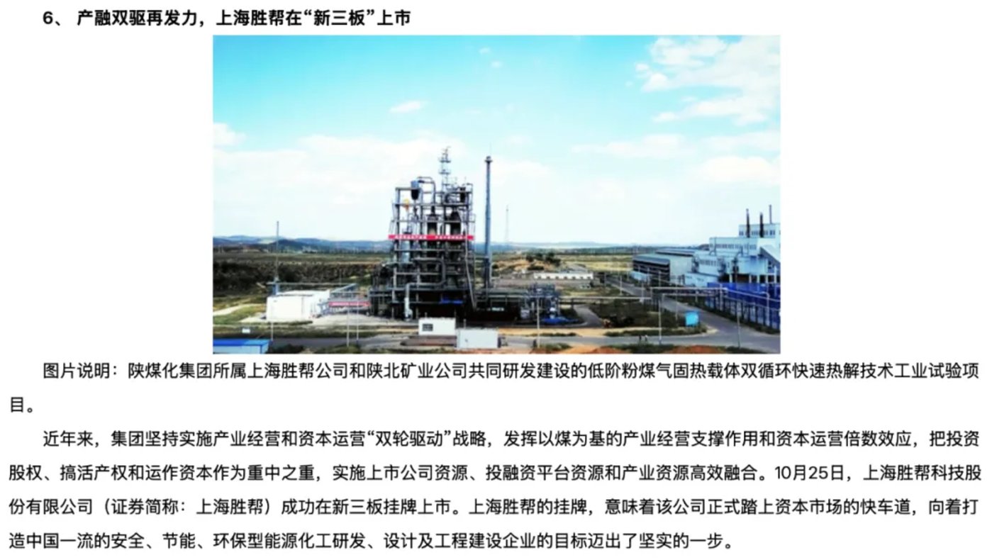 胜帮科技核心职能也很快从煤化工技术服务拓展至股权投资管理,成为陕煤集团在“泛化工”领域资本运作的“大脑”。
