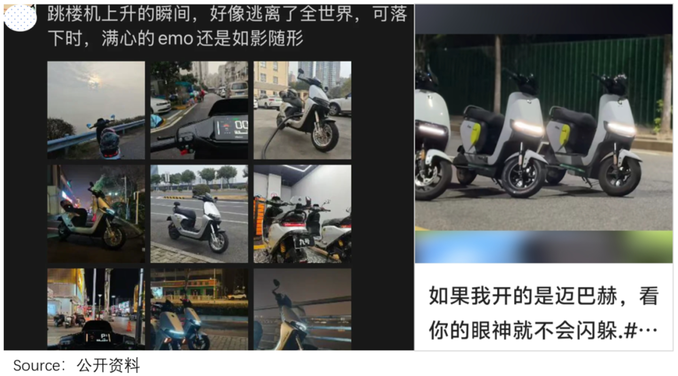 就像她读书时,穿耐克、阿迪的同学能惹来一片艳羡的目光,如今骑3000元起步、动辄上万的“小电驴宝马”,也能活成同学间的潮流风向标。