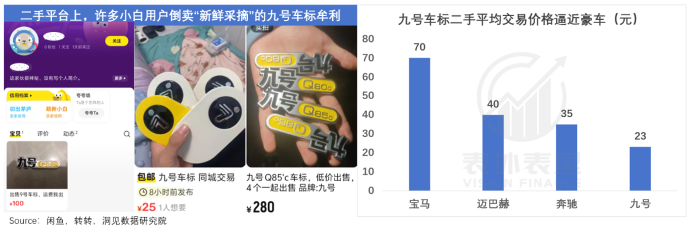 重新买标时,馨馨似乎找到了自己被洗劫的原因——在二手平台上,九号车标交易价格直追奔驰等豪车。