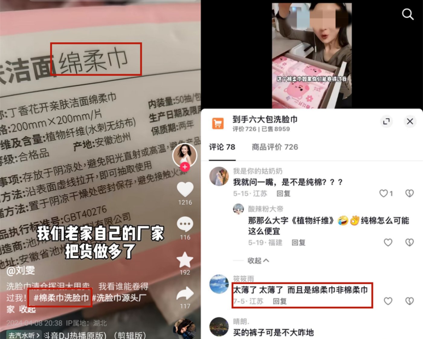 在起号说不上顺利的这个阶段,刘雯曾把质量更差的“绵柔巾”说成“棉柔巾”,以拉动销售。