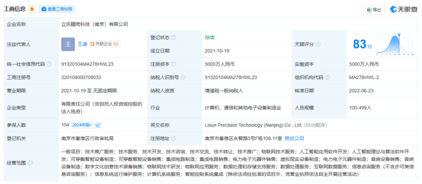 其实早在2021年,立讯精密便通过旗下子公司立讯精密科技(南京)有限公司,开始积累AR/VR相关技术专利,为后续智能眼镜研发奠定基础。