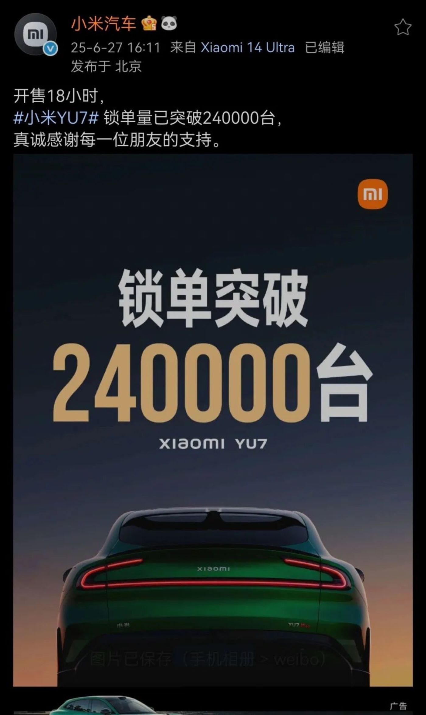 小米YU7自发布以来热度飙升,成为“无法容忍平庸的人”“始终走在时代前列的人”“双肩扛着责任,内心仍有远方的人”的心仪之选;
