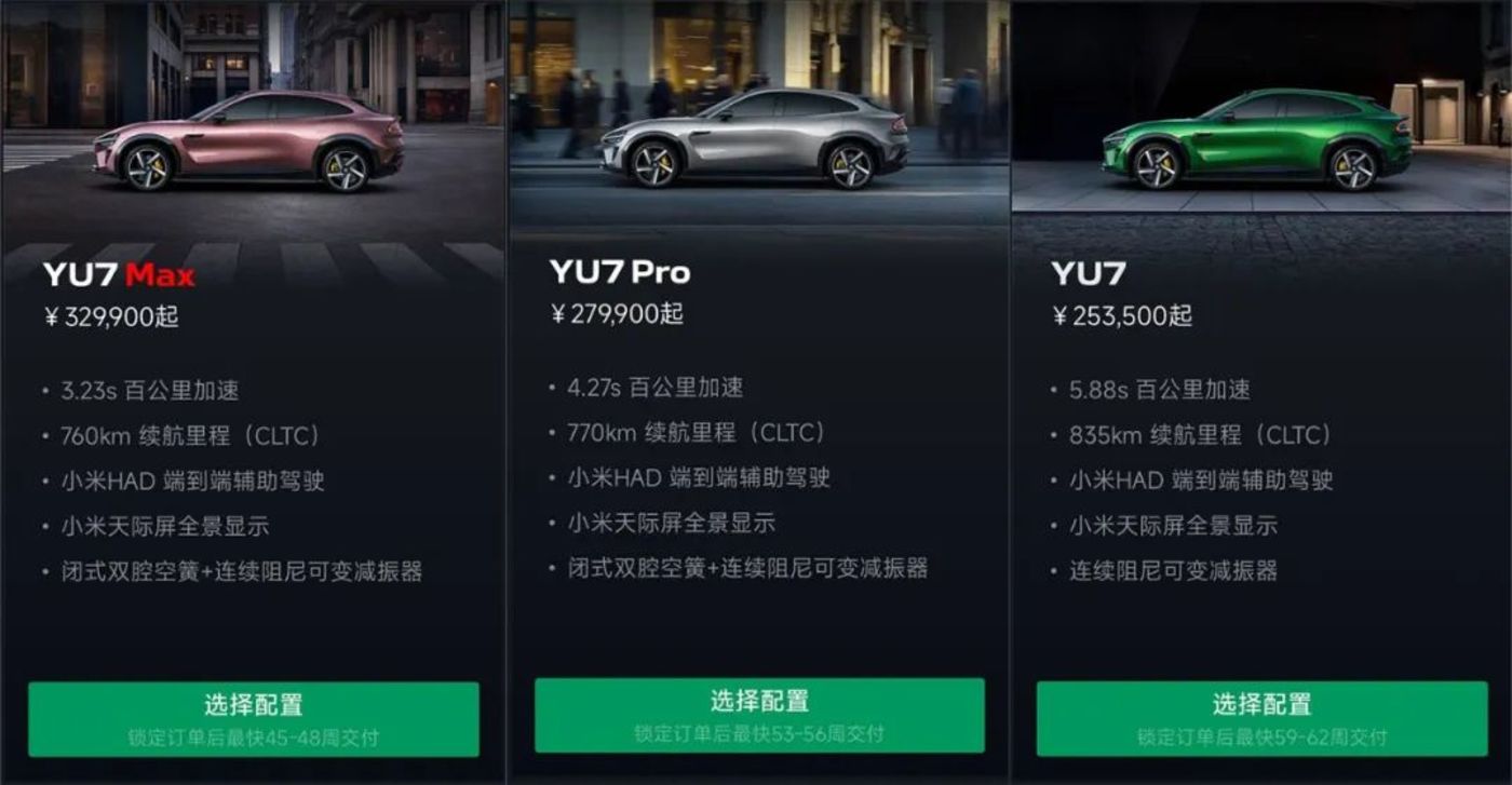 其实不光是刚刚上市的小米YU7,就连已经上市了一年多时间的小米SU7,也仍需要等待超过半年时间。