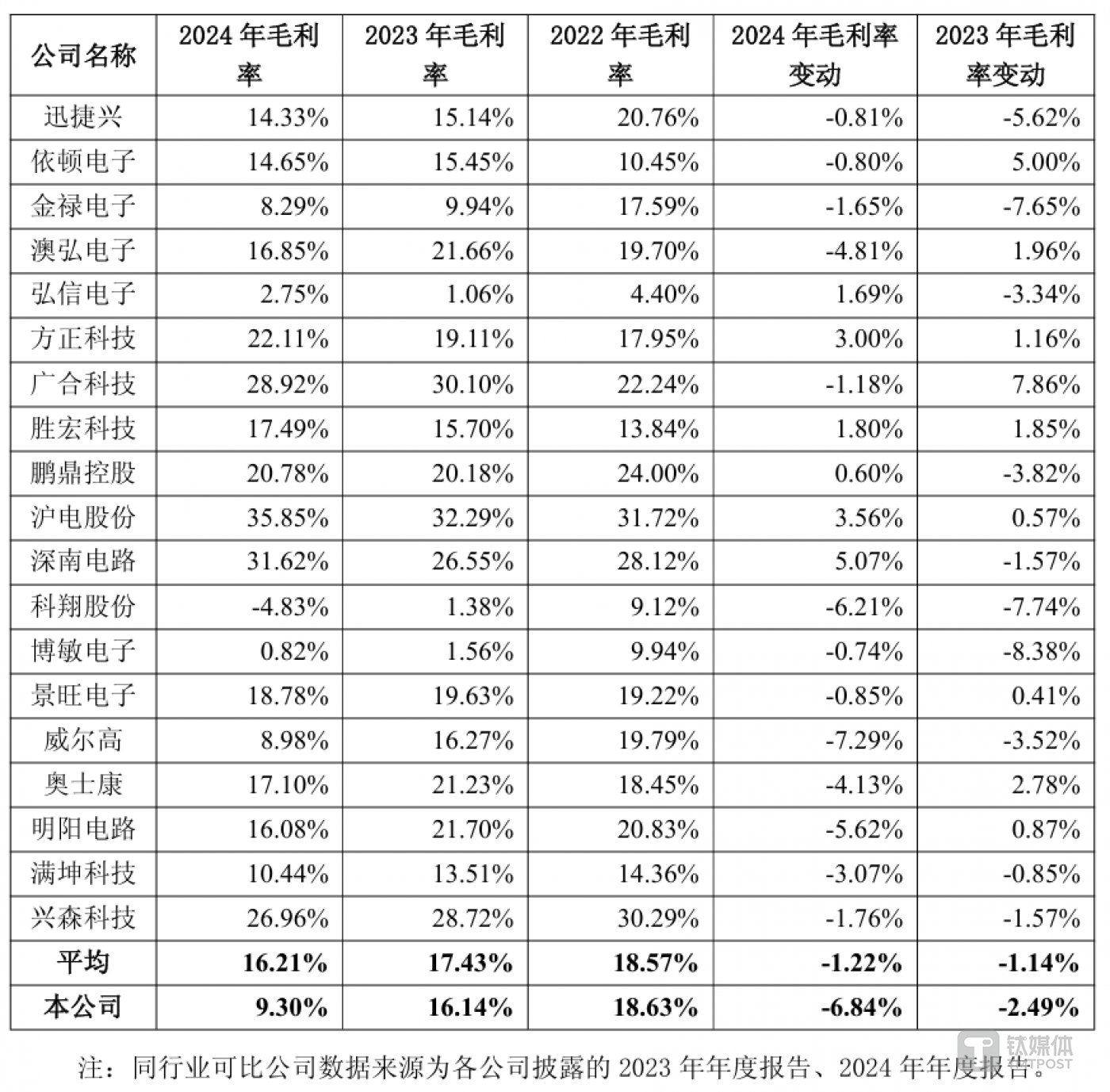 在问询函中,上交所要求公司说明综合毛利率尤其是PCB业务毛利率下滑的原因及合理性。