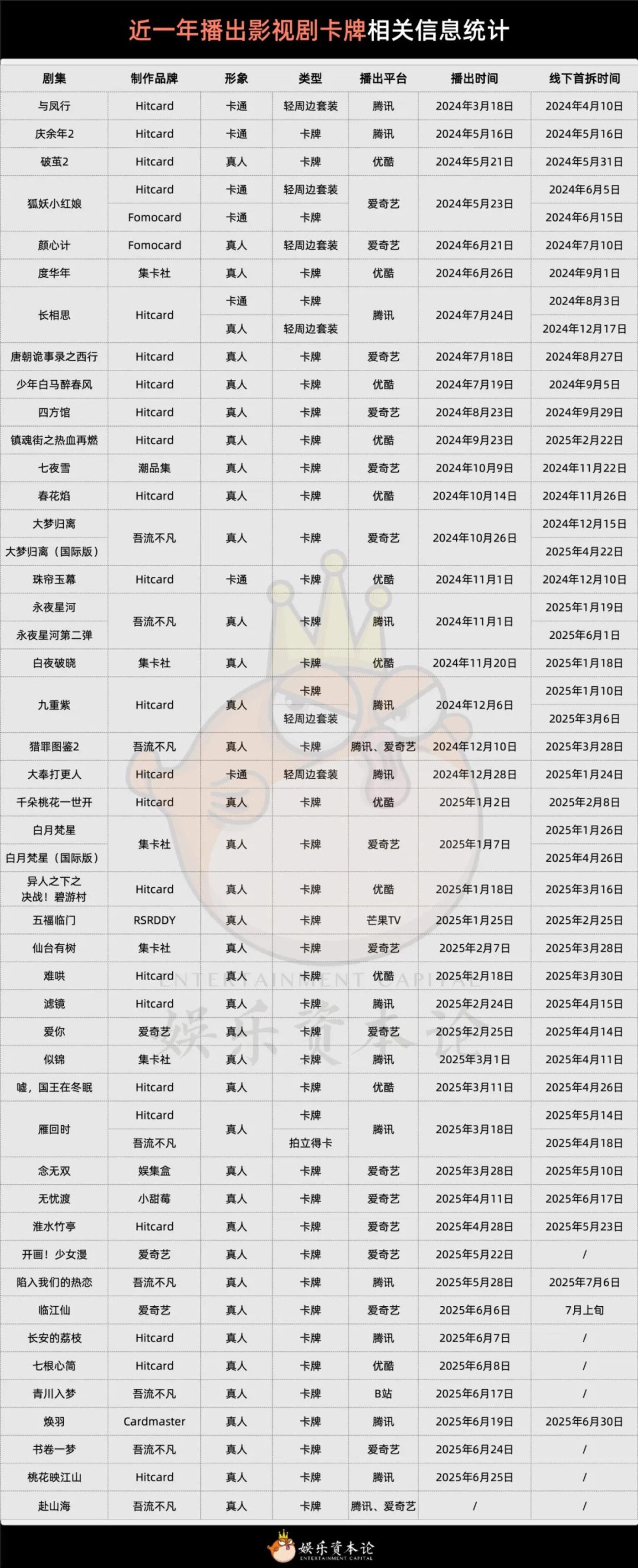 影视卡牌市场从2023年底的爱奇艺《莲花楼》起步,到2024年全面提速,再到如今2025年几乎所有平台相关业务都从早期授权模式转向自营模式。