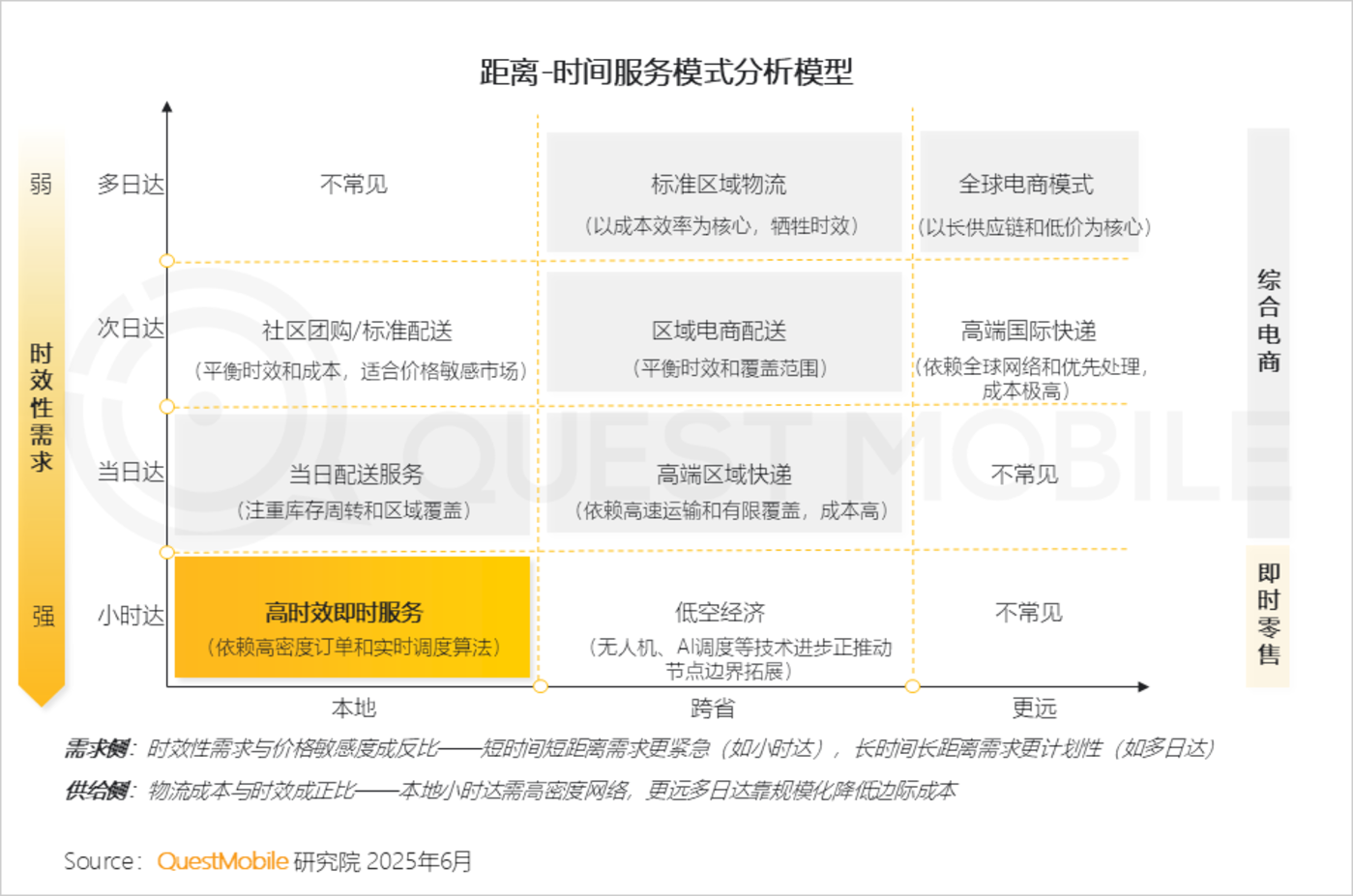 1、距离和交付时间共同决定了商业模式的可行性、需求特征和供给结构;短距离和短交付时间要求高时效性和本地化运营,而长距离和长交付时间则更注重成本效率和规模化