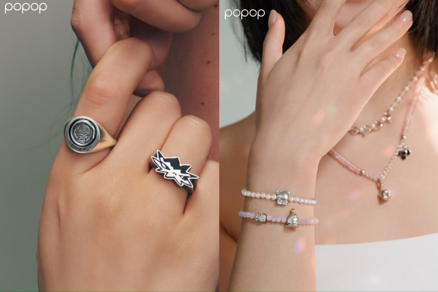 事实上,早在两年前,泡泡玛特就开始了饰品尝试。2023年与2024年,它与周生生两度联名,打造MOLLY系列黄金饰品,推出六大主题足金吊坠及Charme串珠系列。而作为泡泡玛特首个珠宝品牌,popop从今年1月份也在上海、深圳、成都、北京等地多次开启限时快闪。