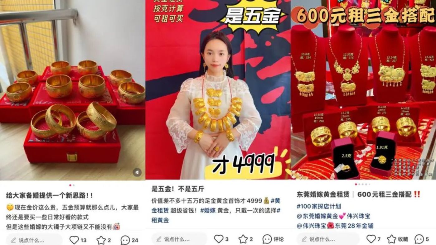 真金租一天两千,假金饰闲鱼上几百块就能搞定,面子有了、照相也好看,婚礼当天风风光光不掉链子。婚礼结束立刻归还,剩下的钱该干嘛干嘛,既不浪费也不耽误传统仪式感。