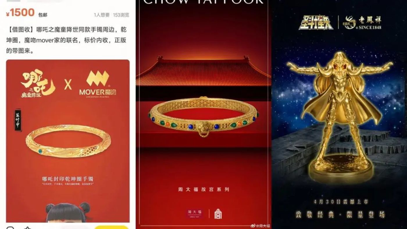 甚至连老牌的周大福,老凤祥,也不再死磕开店,而是走上联名路线。故宫IP、电竞IP、文创IP通通都玩一遍,定价黄金新品吸引了不少男性消费者,高毛利产品占比一路从7%涨到近20%。