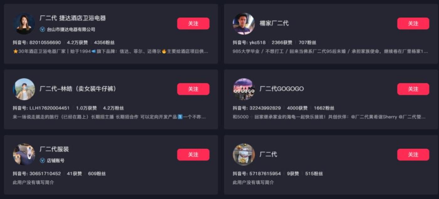 小红书上,大部分的厂二代账号粉丝只有两三位数,发布的作品只有个位数。抖音上的账户,更多也只是少数人成功,大部分厂二代都在浅尝辄止之后,继续湮没在网络的浩瀚海洋中。