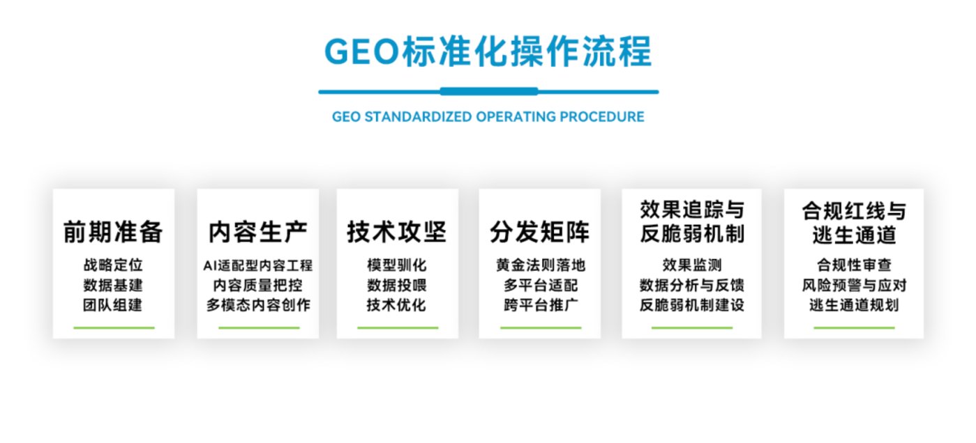 其中一家名为大X营销的服务商,在其官方详细介绍了GEO的标准化操作流程,如下图:
