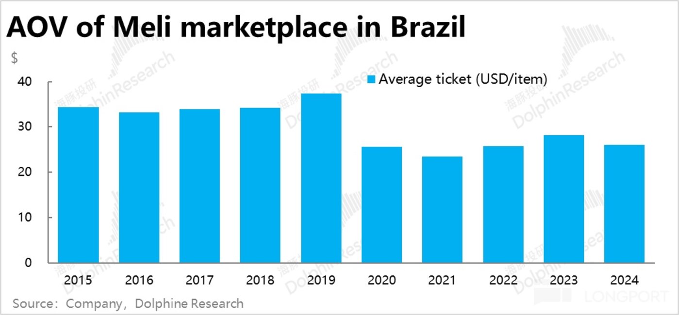 除了第三方的调研,公司披露的官方数据中,Meli在巴西市场的平均客单价大约在$25左右(在疫情后已有明显下降)。相比之下,Shopee在巴西市场的客单价据预测不超过$10。