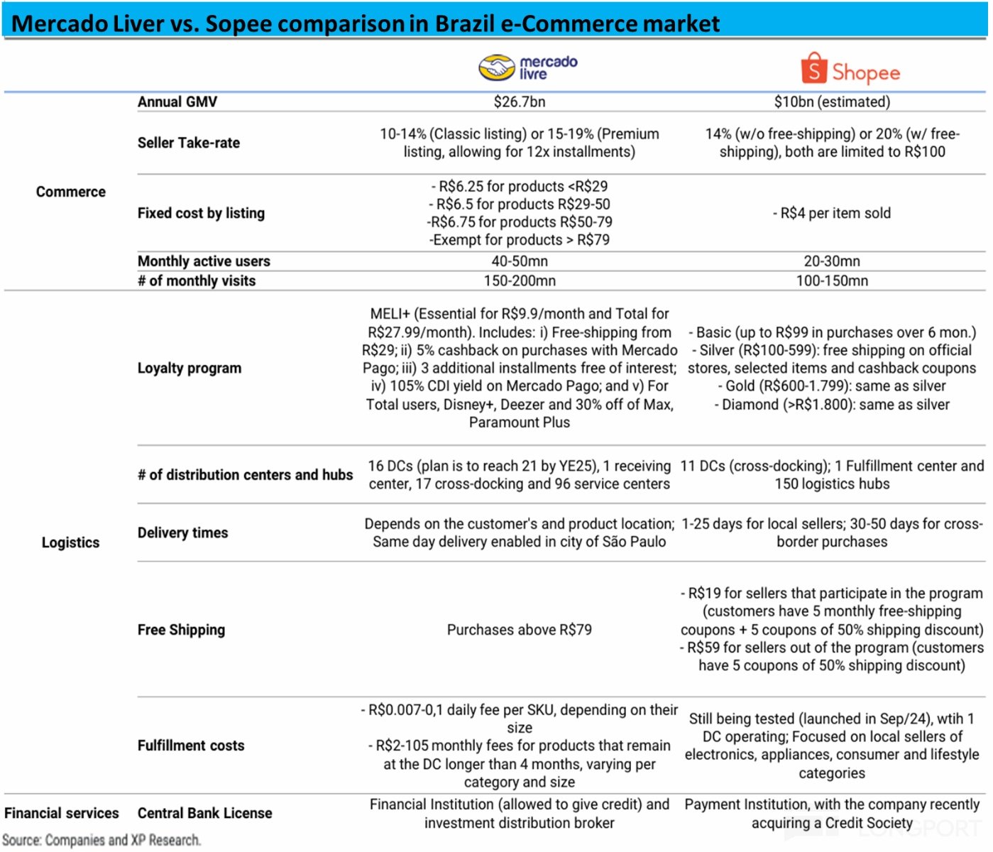 (以下表格统计了Meli和Shopee在2025年初时的各项指标对比,各位可自行查看,我们就不展开)