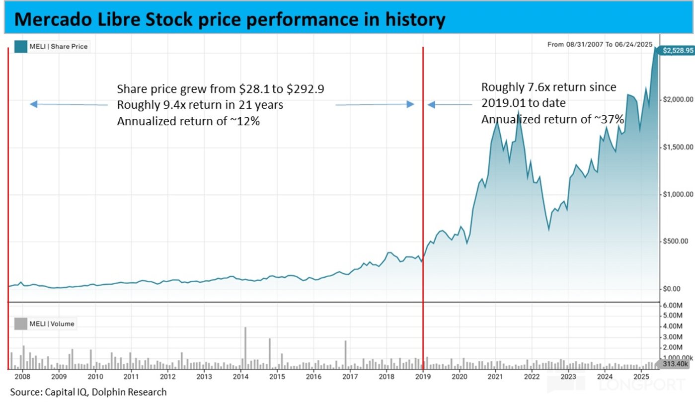 第二阶段,Meli的业绩和股价都在2019~2020年开始“火箭式”提速,两个显然的驱动因素是: