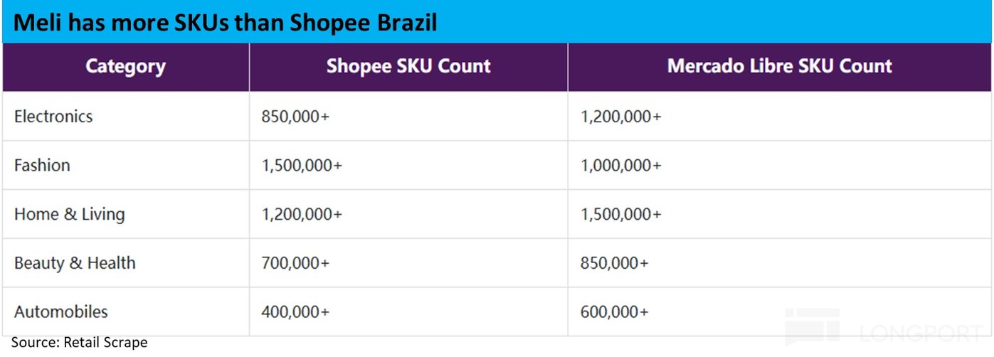 ①“多”的维度,虽然准确且官方的数据来衡量Meli和Shopee平台上整体的SKU数量,但多数新闻报道和调研都显示Meli平台上的商品丰富度明显高于Shopee。