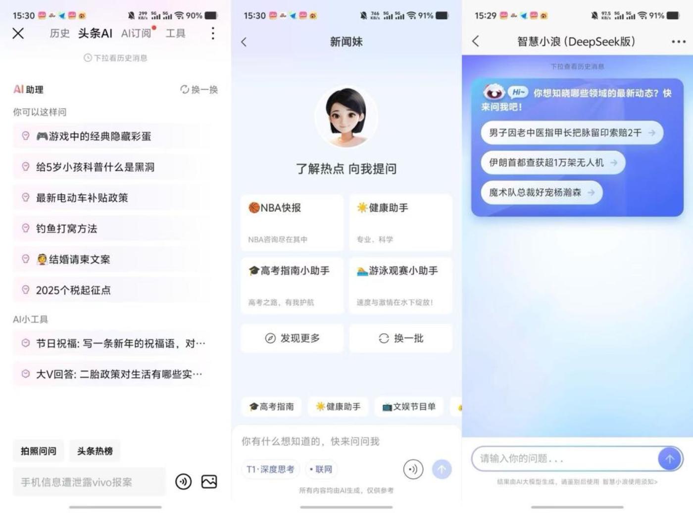 从左到右分别是头条AI、新闻妹和智慧小浪