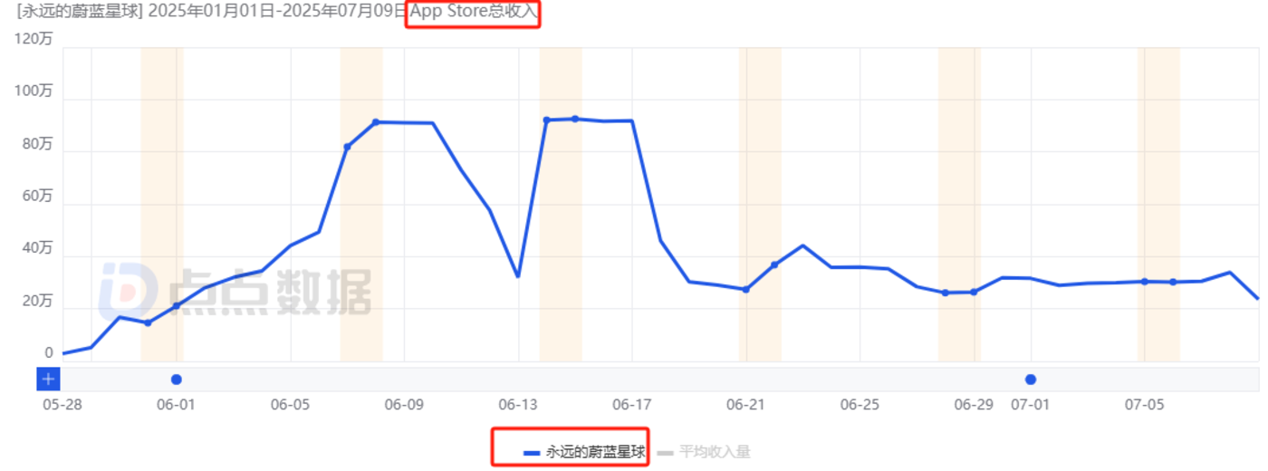 《永远的蔚蓝星球》上线于5月28日,凭借1.2亿元的iOS端总流水位于榜单第4名。