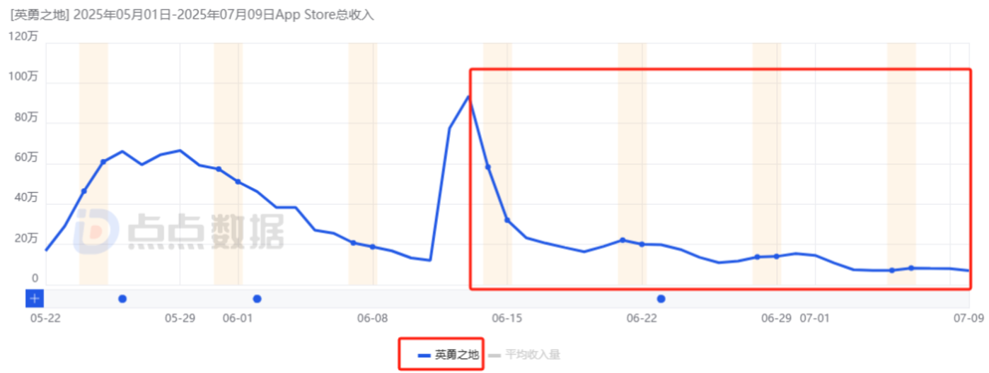 该作凭借Q版魔幻的风格,已经被验证过的“靶心Like”玩法融合卡牌与自走棋式英雄合成的元素,以及高峰期单日超4万组素材(几乎与《英雄没有闪》高峰期持平)的大手笔买量在首月iOS端斩获1.06亿元的流水,是上半年首月流水第二高的新游,然而6月中下旬其日流水开始明显下滑,目前iOS端日流水约为170万左右是峰值的25.6%,但依然位于iOS游戏畅销榜第19名。