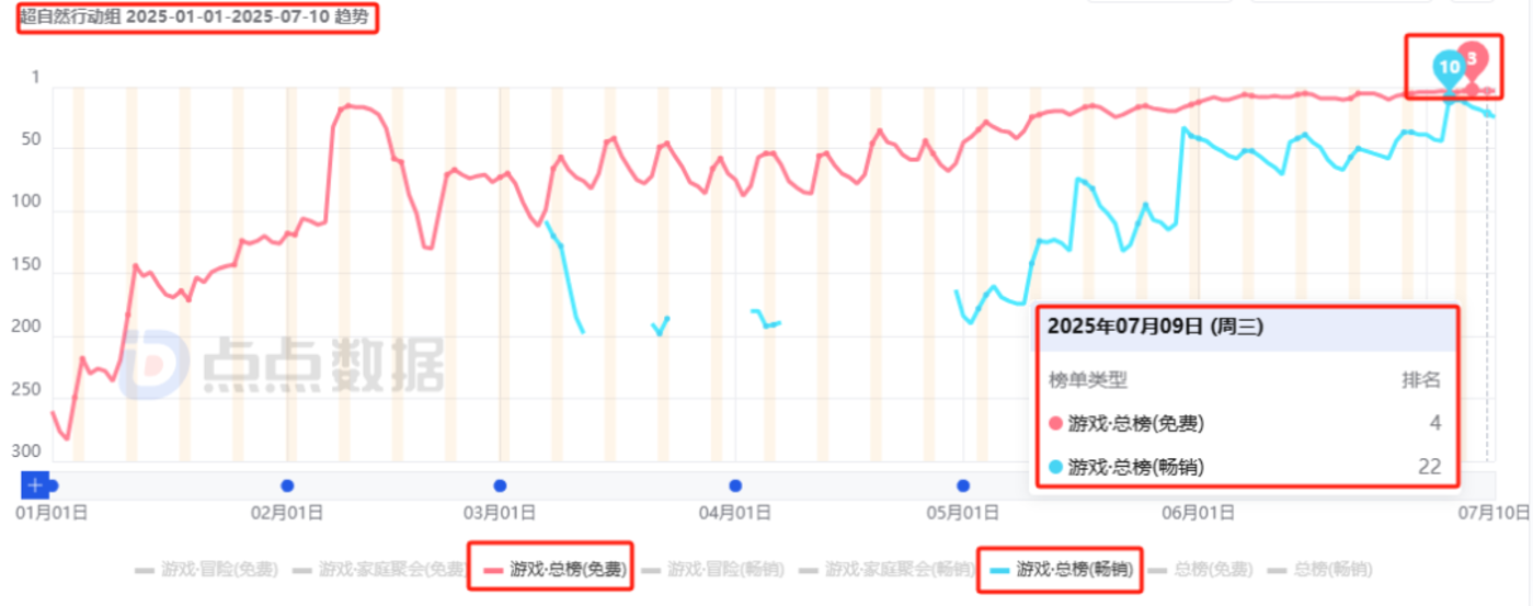 • 数据趋势:大部分上榜新游的月流水都处于持续下滑中,只是速率大小和是否找到稳态的问题,巨人旗下的《超自然行动组》是仅有的低开高走的逆袭之作,月流水从首月的54万一路增长至6月的1700万,甚至帮助巨人的股价创6年来新高,值得重点关注