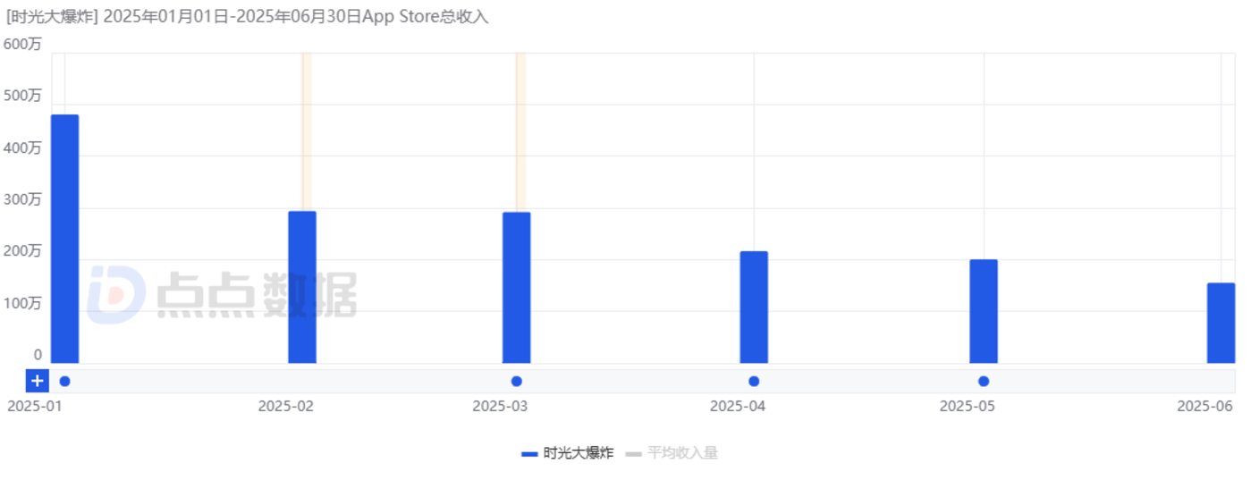 《时光大爆炸》与《永远的蔚蓝星球》累计iOS端流水一样,但前者的首月流水(1月2日公测)仅为3510万是后者的33.11%,因此处于一梯队的最后一名,值得一说的是,虽然其流水在首月过后也处于下滑状态,但近3个月下滑速率不大,当前月流水约为1100万元左右。
