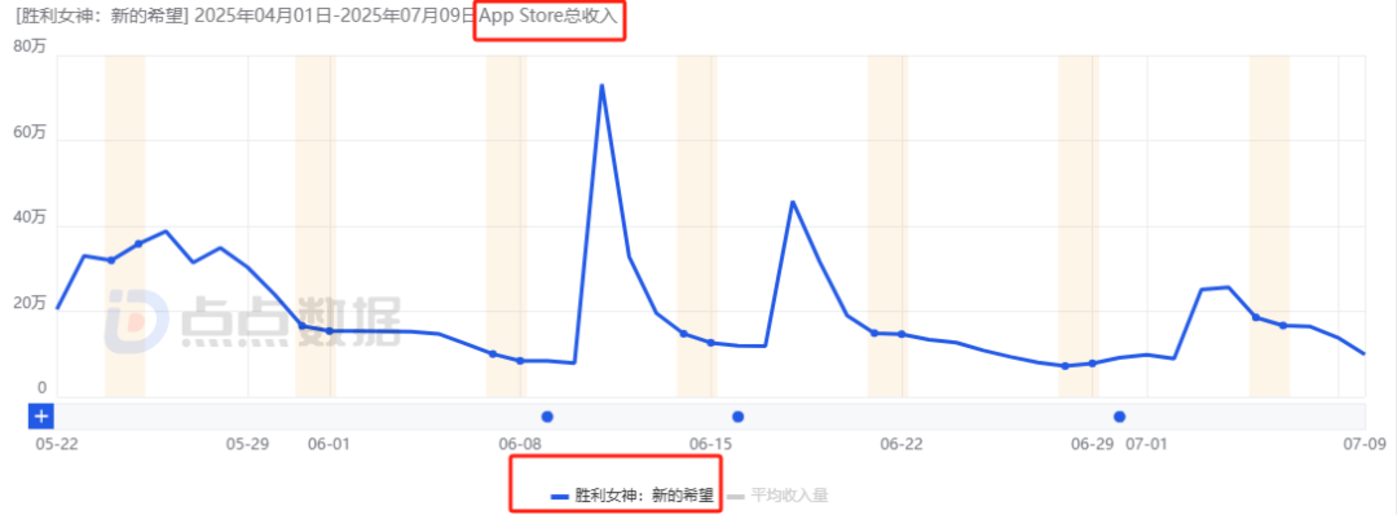 其次便是二次元射击手游《胜利女神:新的希望》,该作因为海外的卓越表现被国内玩家期待已久,行业也认为其很有可能成为腾讯今年的最大爆款,然而事与愿违,其iOS端首月流水仅为5100万(同时间段海外流水为1.07亿元),目前其日流水已经不足100万,位于游戏畅销榜第43名。