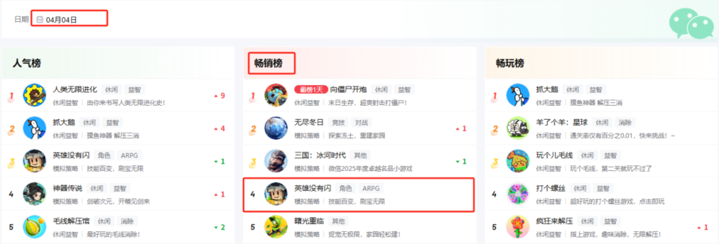 2、三七重回巅峰!《英雄没有闪》空降小游戏畅销榜第2,三款会师Top 10