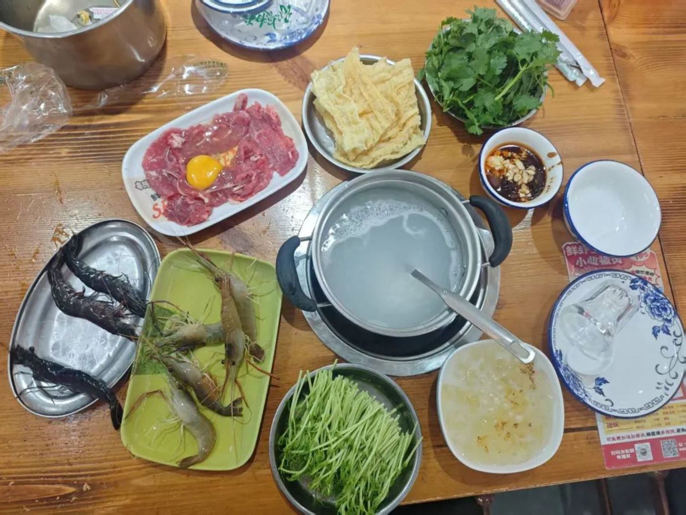 “人均不到100就能吃到好多海鲜,瑶柱肉、九节虾、墨鱼丸,食材新鲜,分量足!”“一人一锅,吃完海鲜再喝粥,很巴适!”