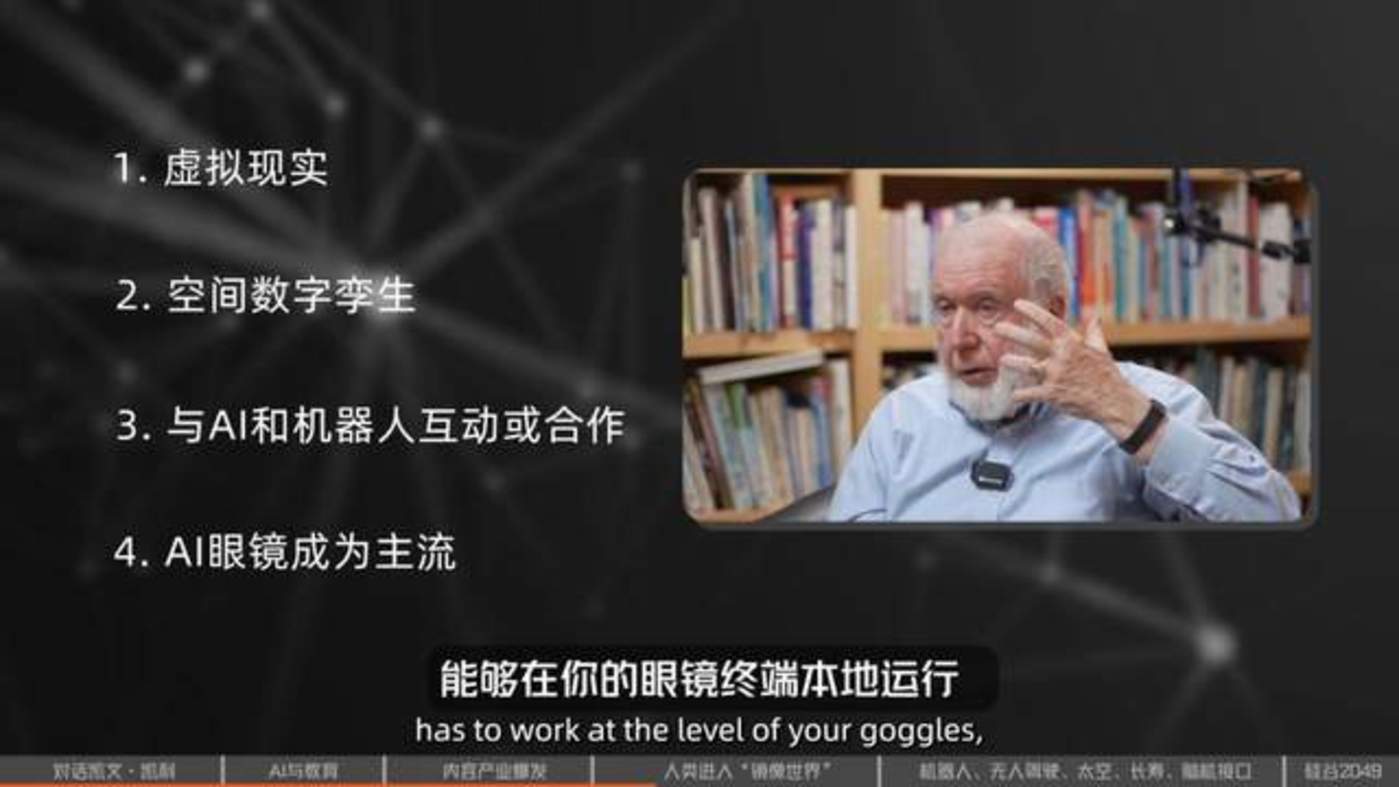 更重要的是,一旦AI进入现实世界,那个镜像世界几乎是不可避免的。当你戴上眼镜环顾四周时,它就会开始自动“绘制”这个世界。它在实时地绘制、记录、消化整个环境。比如:“哦,这里有楼梯可以上去”、“哦那里有扇门,你可以通行”——它在理解这个世界。所以只要我们戴上眼镜,无论怎样,我们就开始构建那个镜像世界了。这就是AI通过上百万人佩戴智能眼镜、收集视觉和空间信息,从而“看见”并“理解”整个世界的结果。因此,这个镜像世界的出现,是AI与智能眼镜普及之后自然而然的结果,自然就会到达那个世界。