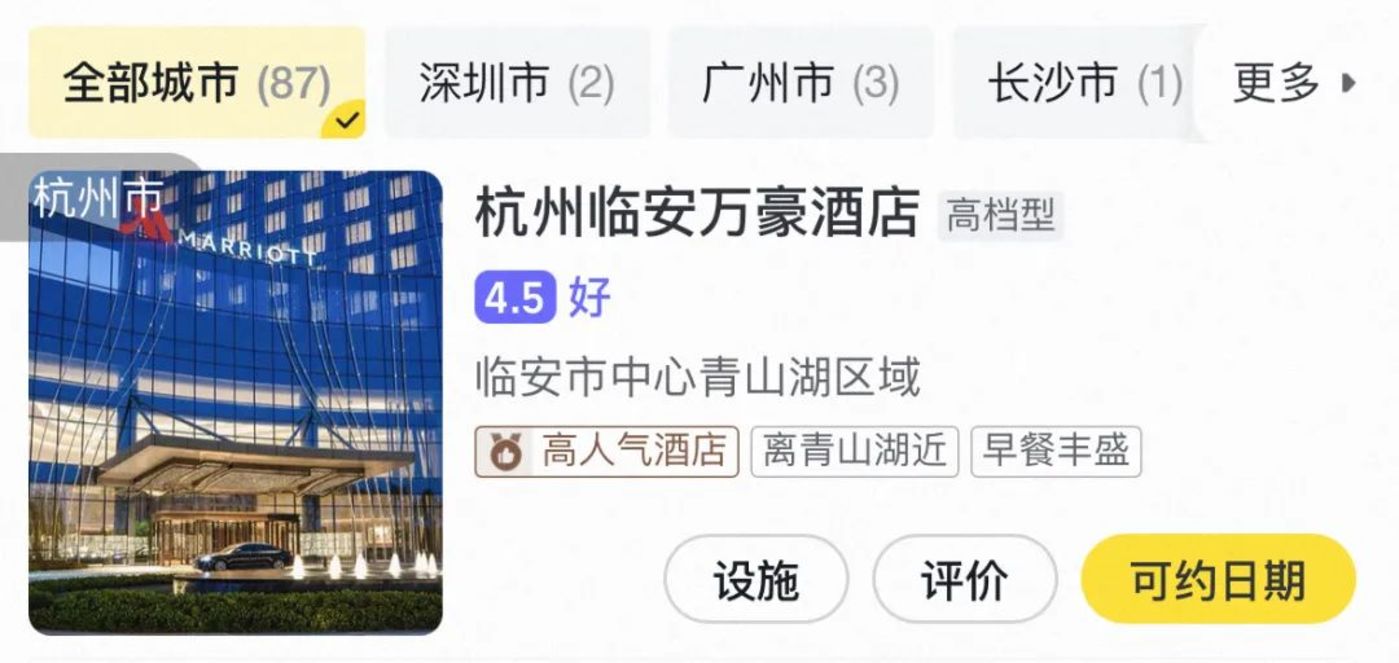 同时,携程平台的消费用户以高净值人群为主,他们肯为优质服务与设施买单,对价格的敏感度相对较低。这和阿里平台的用户人群有一定的重合度,加之飞猪仅试点了几个城市,因此这些高星级酒店的用户很难注意到飞猪的补贴力度。
