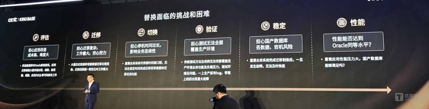 面对企业在替换国外主流关系型数据库及非关系型数据库时,普遍担忧的迁移复杂度高、应用改造成本大、停机风险难控、性能稳定性不足等核心挑战,杜胜称,电科金仓提供的专业迁移方案能帮助客户低风险、低难度、低成本、平滑完成数据库的迁移替换,让软件应用开发变得很简单,成本更低、质量更好、效率更高。