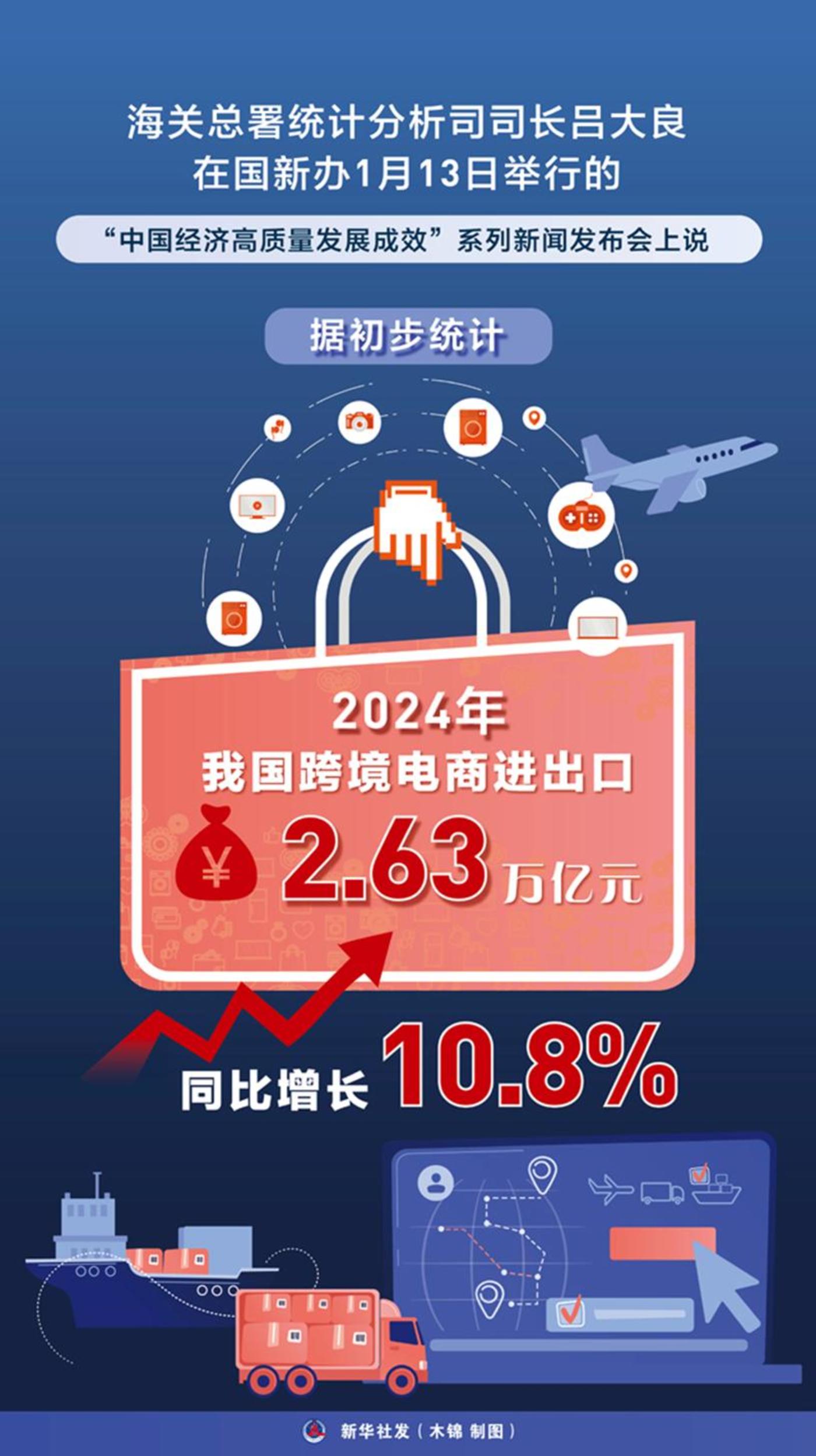 海关总署统计分析司披露的数据显示,2024年,中国跨境电商进出口2.63万亿元,同比增长10.8%。过去五年,中国跨境电商贸易规模增长超10倍。
