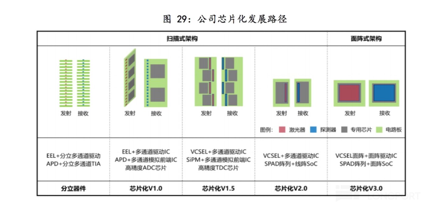 而激光雷达价格下降的核心在于,公司用芯片化 + 高集成度实现了大幅降本: