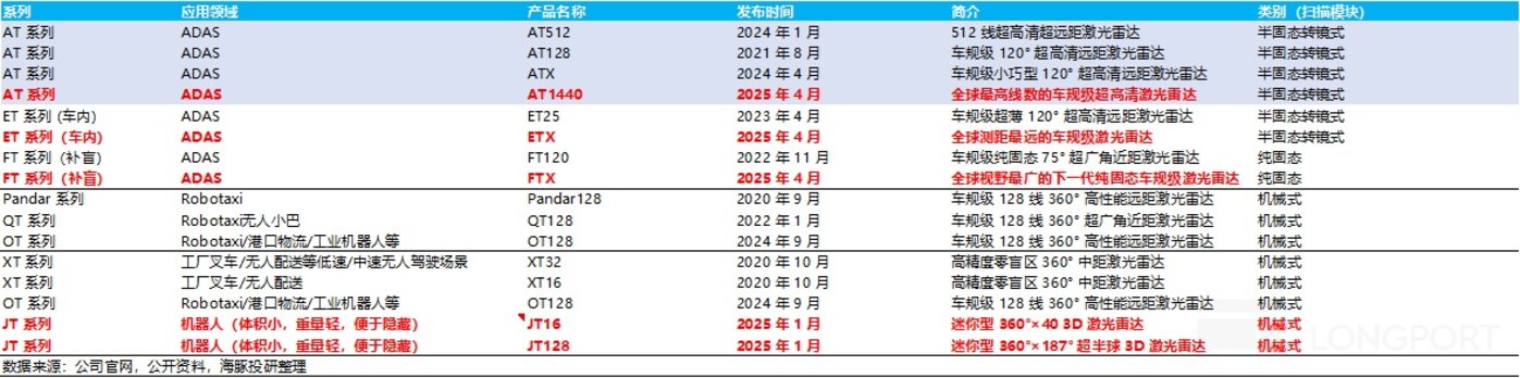 所以由此看出,禾赛的激光雷达布局相对完善,公司善于踩中热门赛道实现产品切换。初期用 Pandar 系列布局 L4 Robotaxi 赛道,后在该赛道遇冷后,又迎合了乘用车赛道对激光雷达高增趋势,用 AT 系列布局乘用车 ADAS 赛道(2025 年主要出货产品为 ATX),在 2024-2025 年实现了快速放量。