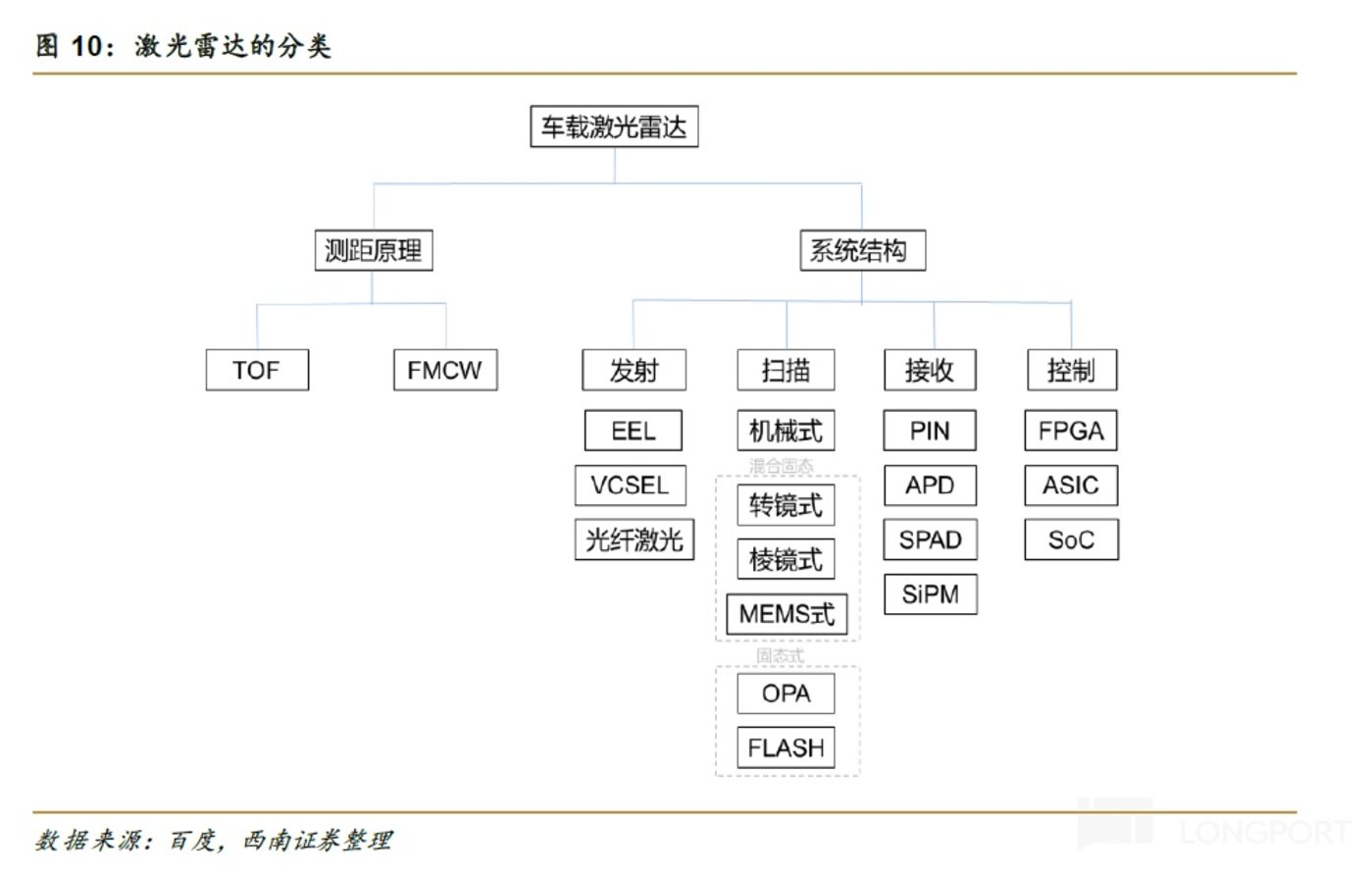 而目前市场上对于激光雷达的划分方式主要以扫描方式进行划分:目前禾赛在扫描模块主要采用的是一维转镜方案,而速腾仍然采用的是 MEMS 方案。