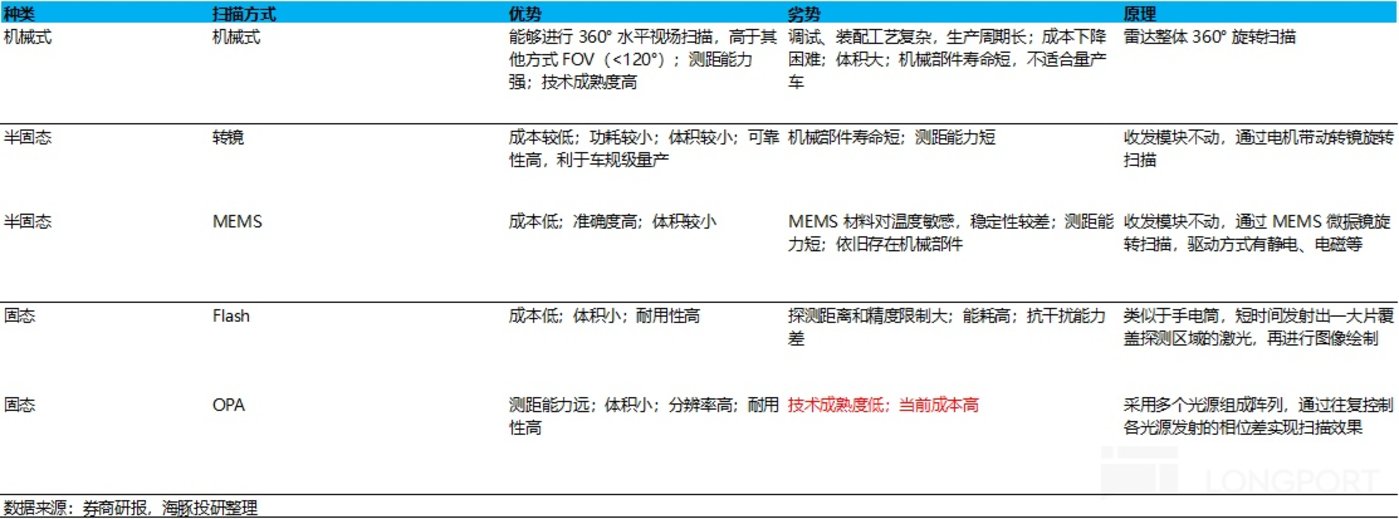 再从两家的技术路线比较来看,目前的激光雷达技术端尚未呈现收敛状态: