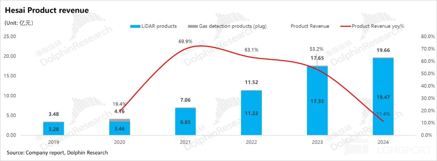 而国内的 L4 Robotaxi 厂商也从之前价格贵,使用寿命短的 Pandar 系列切换到更便宜,性能更好的 AT 系列(如萝卜快跑/小马智行都搭载了 4 颗 AT128 系列雷达),所以该收入板块目前带来的收入/出货量增速都相对有限。