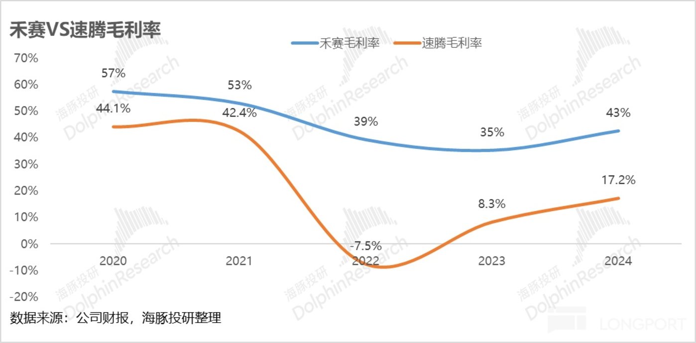 禾赛在 ADAS 激光雷达的技术路线上一直 all in VCSEL+ 半固态转镜方案,虽然初期在成本上并没有速腾使用的 EEL+ 半固态 MEMS 方案有优势(当时更成熟的方案,降本路径更清晰,著需要精简 EEL 激光器数量),所以速腾也一直采用低价战略抢占 ADAS 的市场份额(速腾的毛利率和 ADAS 激光雷达的价格相比禾赛更低)。