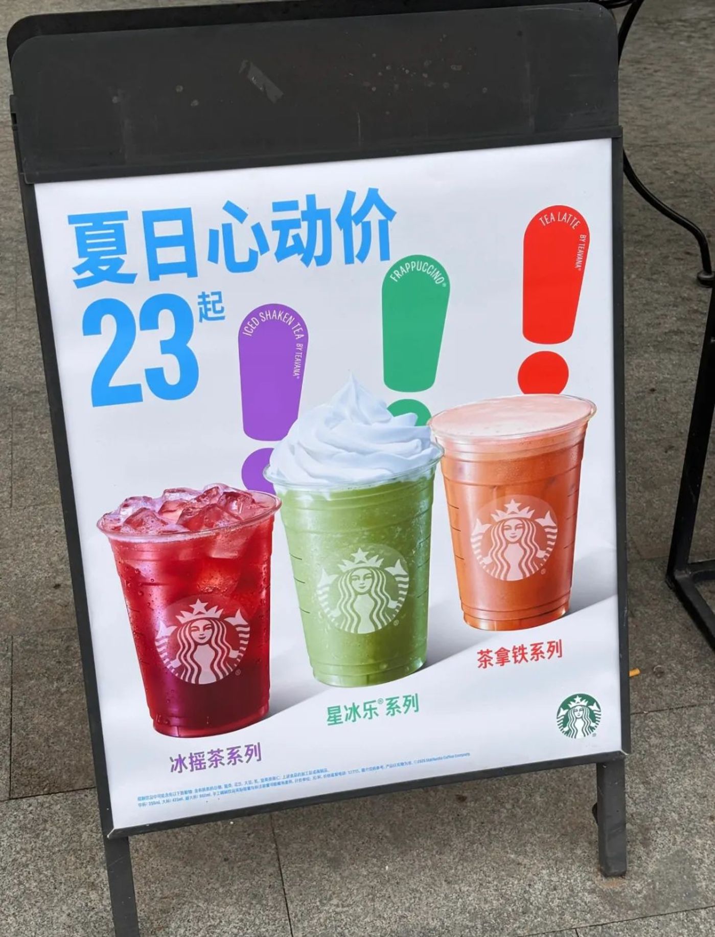 门口贴着降价的海报,大杯星冰乐只卖23元,听上去像是件好事。但店里冷清了不少,点单不用排队。服务员仍然礼貌,但一切都显得有点例行公事。你能看出来,那个象征中产生活方式的“第三空间”星巴克,已经没了当年的光环。